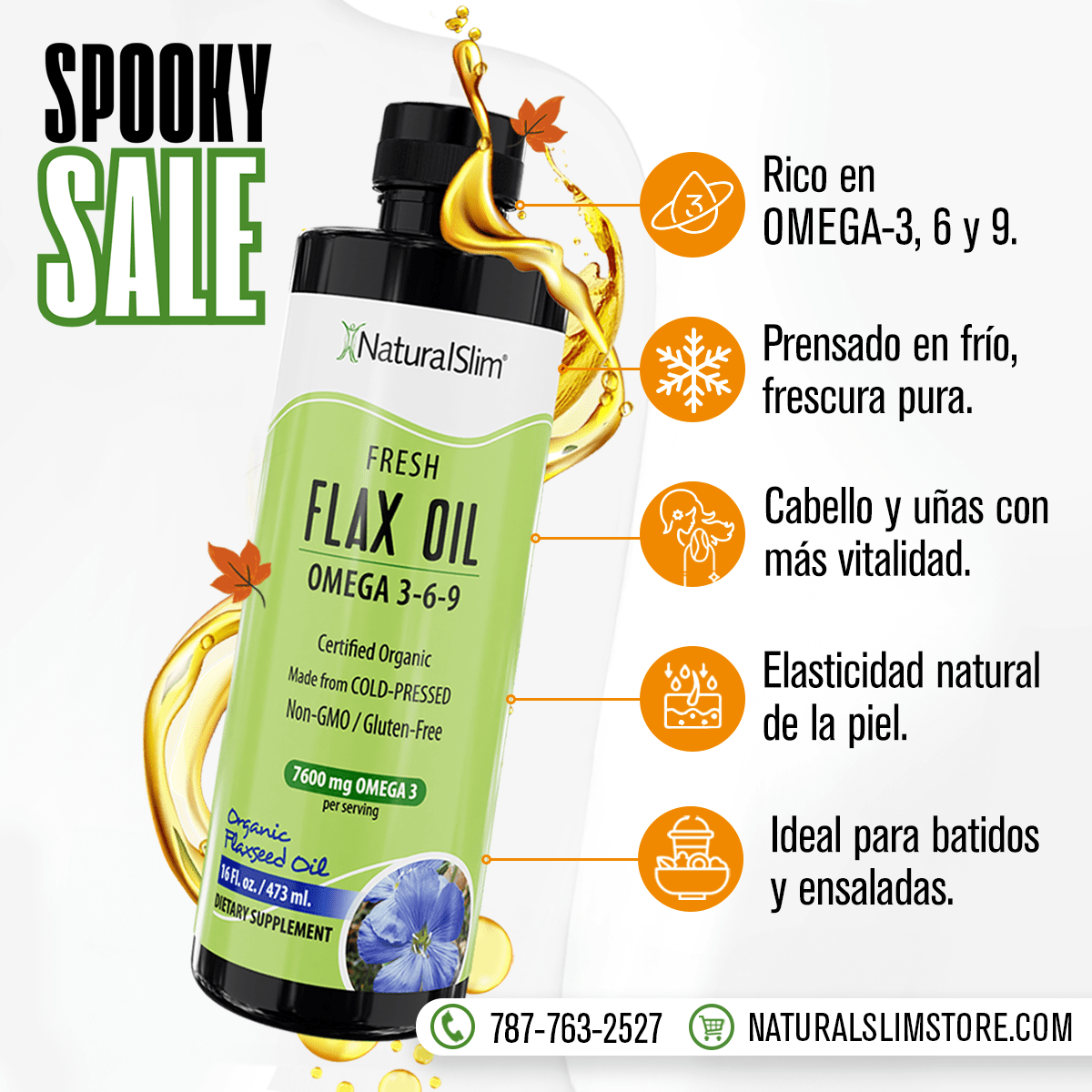 ¡Apoya el romper grasas viejas y dar elasticidad a la piel!*. Nuestro aceite de semilla de lino orgánico tiene un sabor fresco y proporciona 7,600 mg de ácidos grasos OMEGA-3 por porción, además de OMEGA-6 y OMEGA-9.