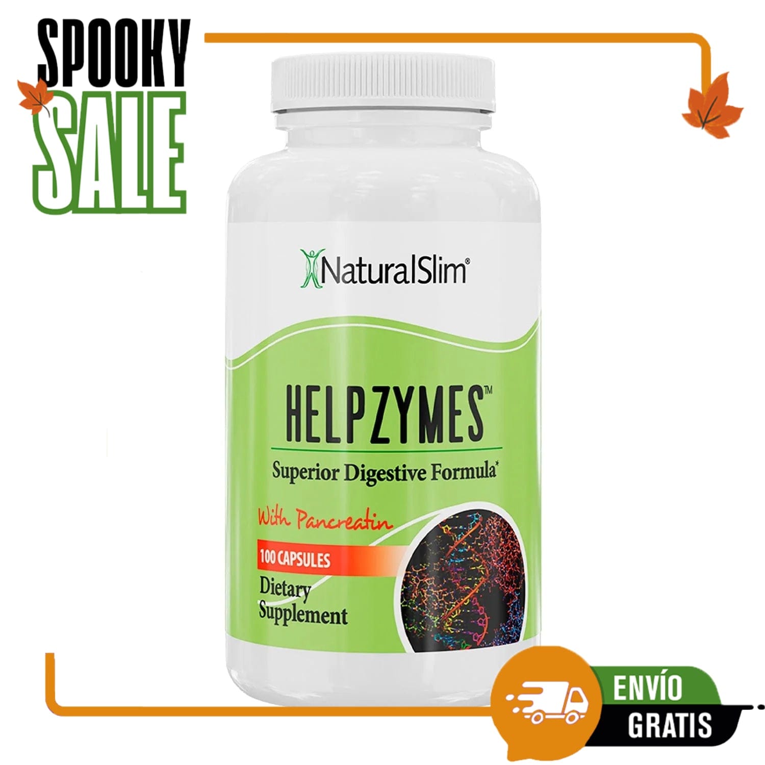Esta formulación provee una mezcla de potentes enzimas digestivas que ayudan a que el cuerpo tenga una absorción eficiente de los nutrientes que contienen los alimentos que consumimos y mejorar el metabolismo. Incluye pancreatina (para ayudar a romper grasas de su cuerpo), una dosis de ácido clorhídrico, idéntica a la que produce su estómago (para ayudarle a digerir las proteínas adecuadamente), entre otros. Este suplemento le ayudará a mejorar su digestión, evitando problemas de gases estomacales o digestivos, reflujo y sueño después de comer.